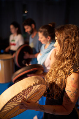 Vivência coletiva onde o grupo se torna um instrumento vivo e ressonante